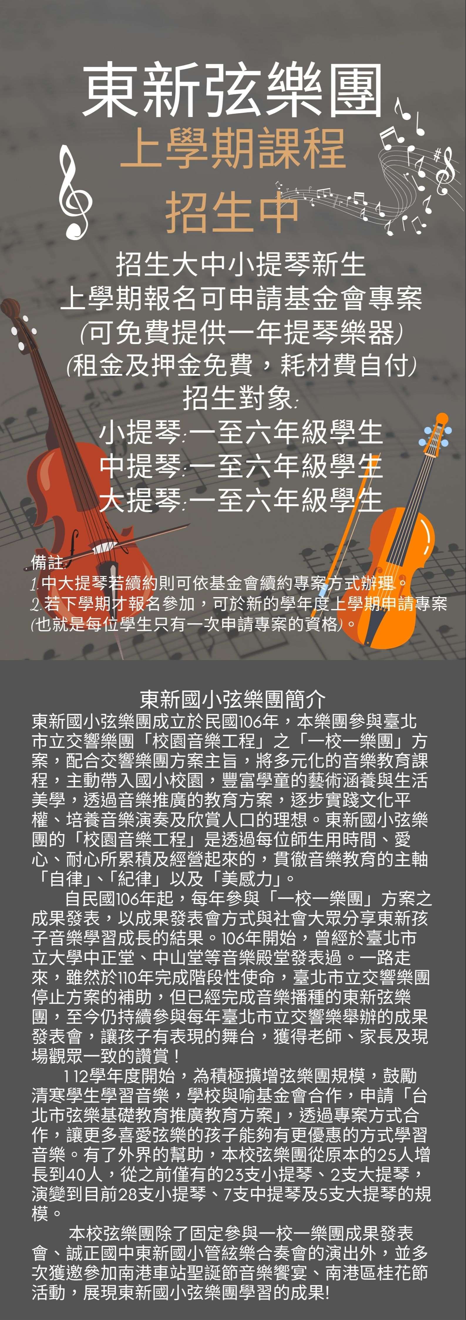 - 因臺北市教育局尚未公布114學年度行事曆,目前簡章內所列之上課與停課日期皆為初估,實際日期將依最新行事曆為主,學校將另行公告修正簡章並通知家長。若未來因新增放假日導致上課天數減少,社團費用將隨之調降,實際繳費金額請依繳費單及修正後簡章為準。
