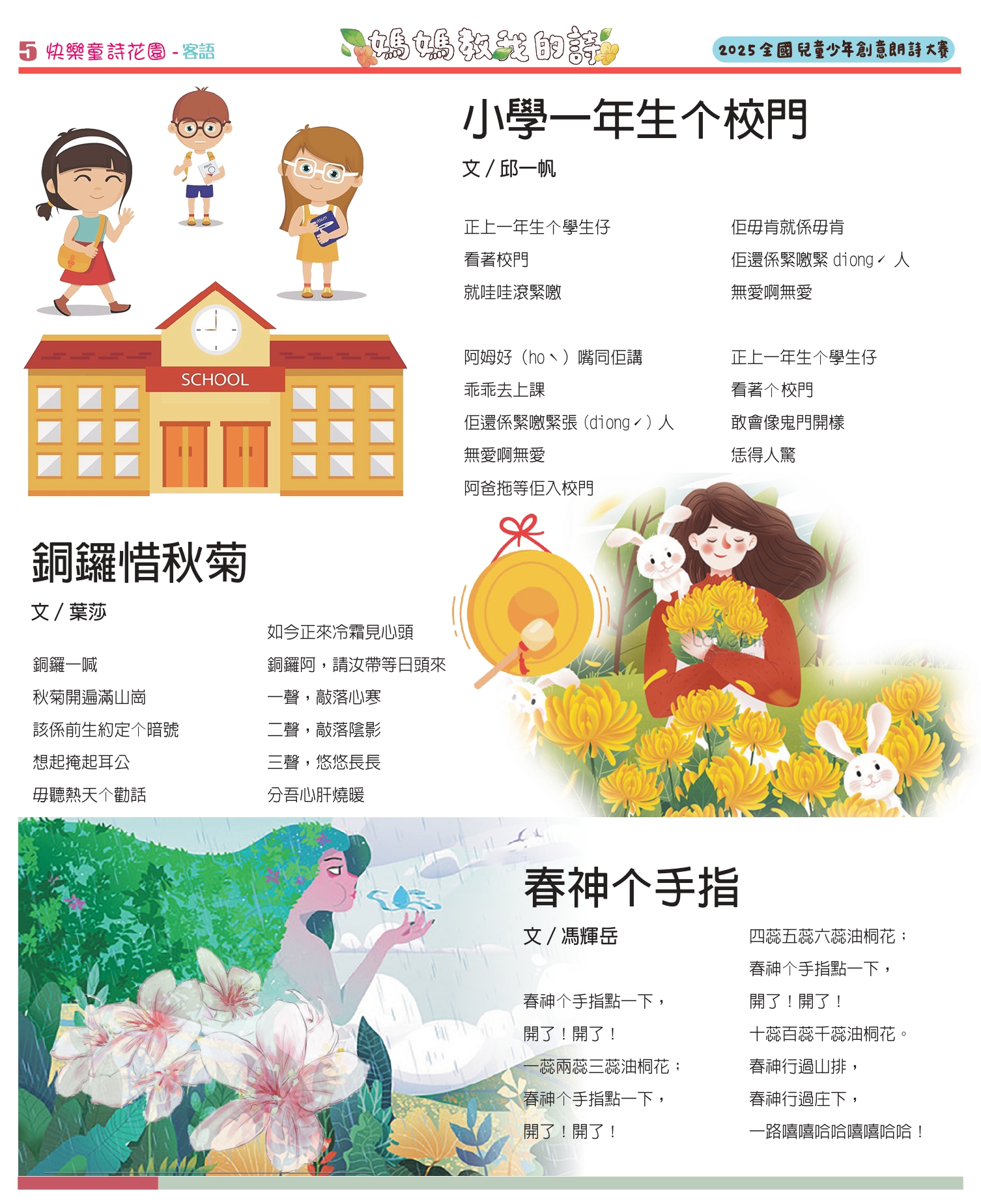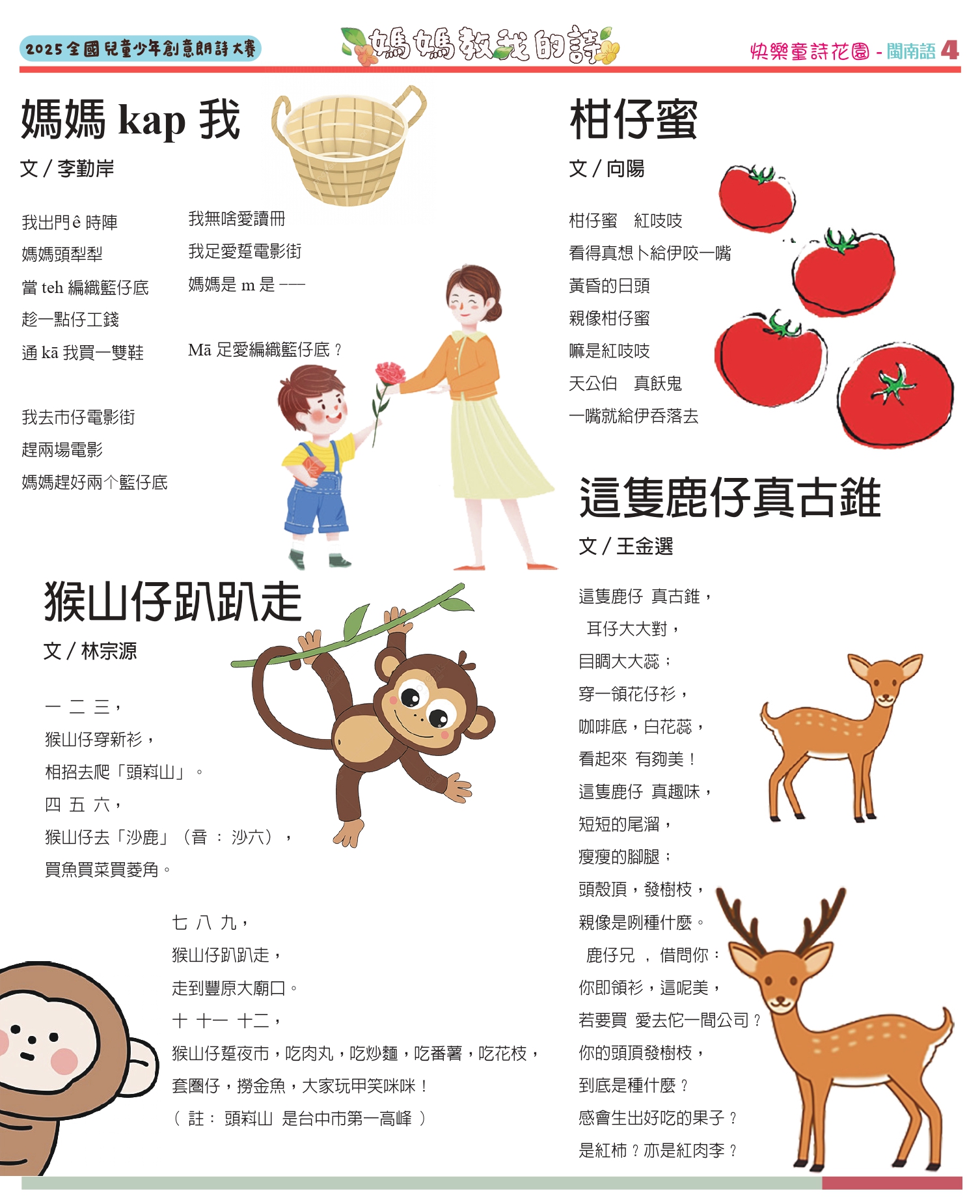 三、主辦單位編撰2025《媽媽教我的詩》專刊,收錄多首適合 兒少朗讀的詩作,協助選讀運用。