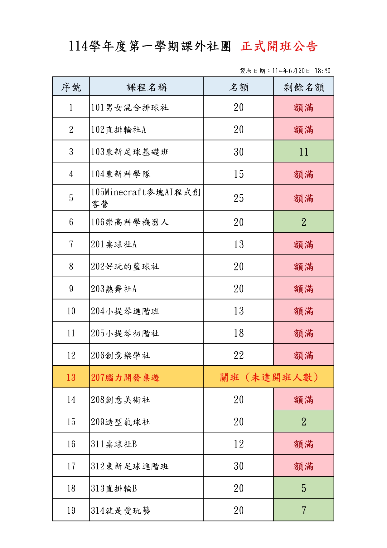 若有社團相關疑問,歡迎電洽學務處 訓育組 吳老師 27837577#1301。