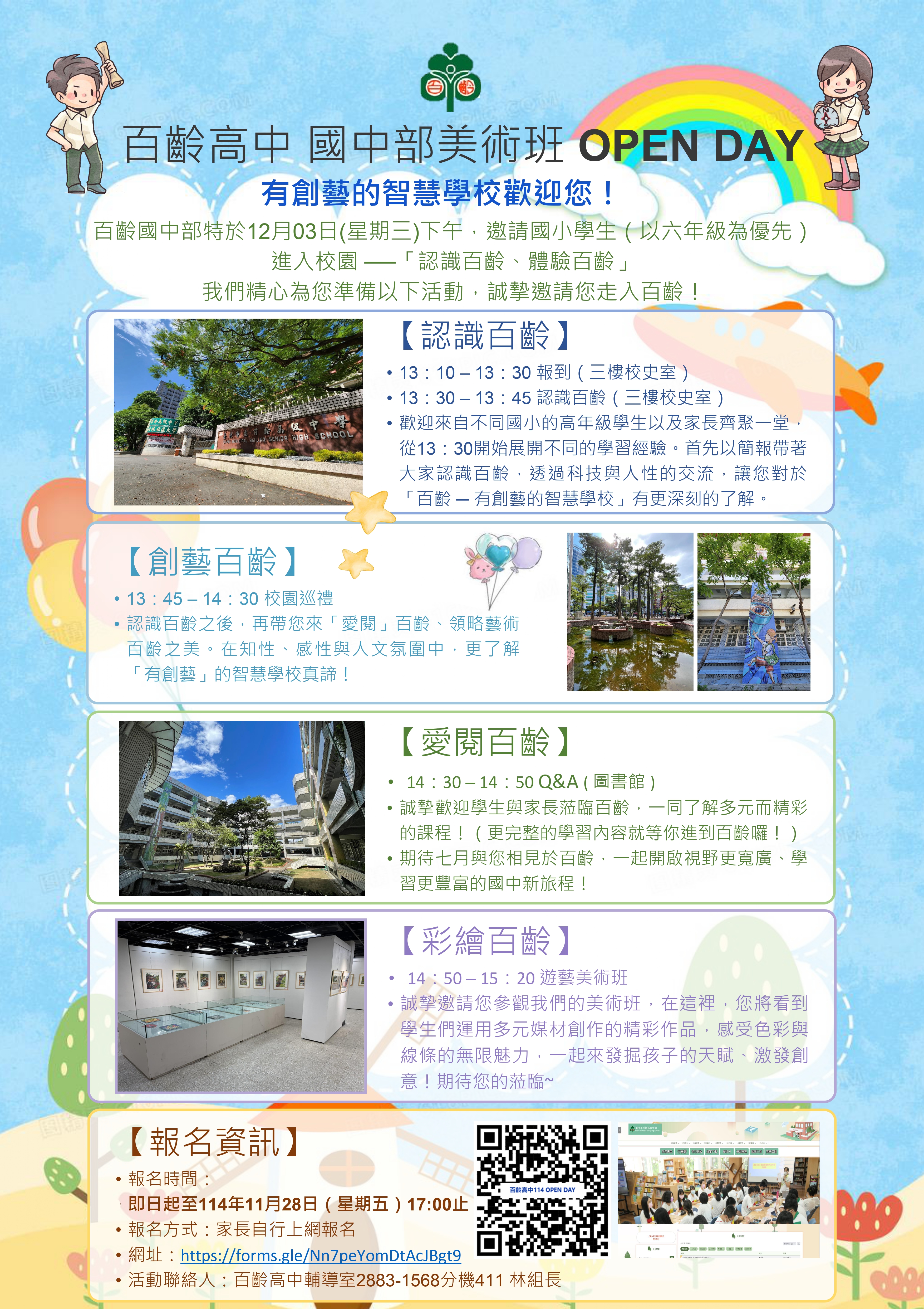 活動地點:臺北市立百齡高級中學(臺北市士林區承德路 4 段 177 號)。