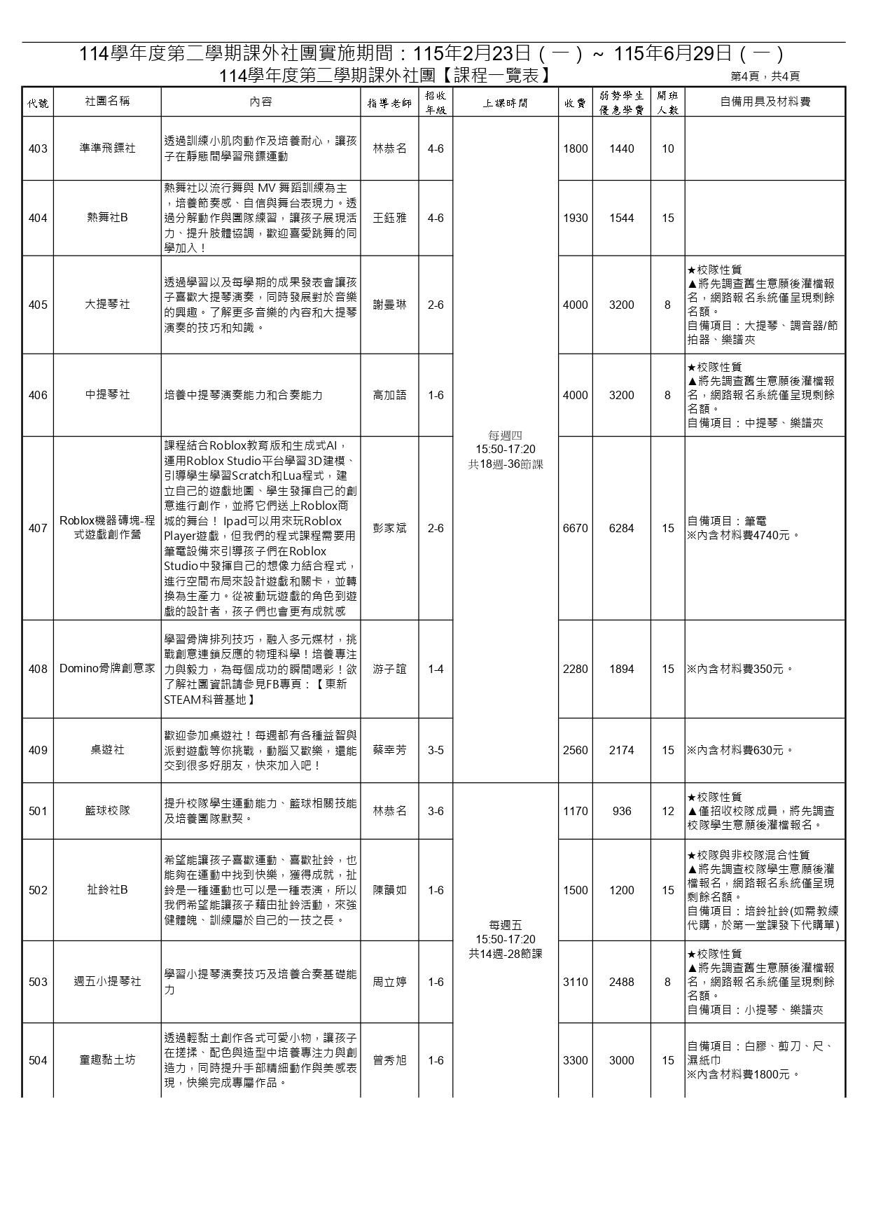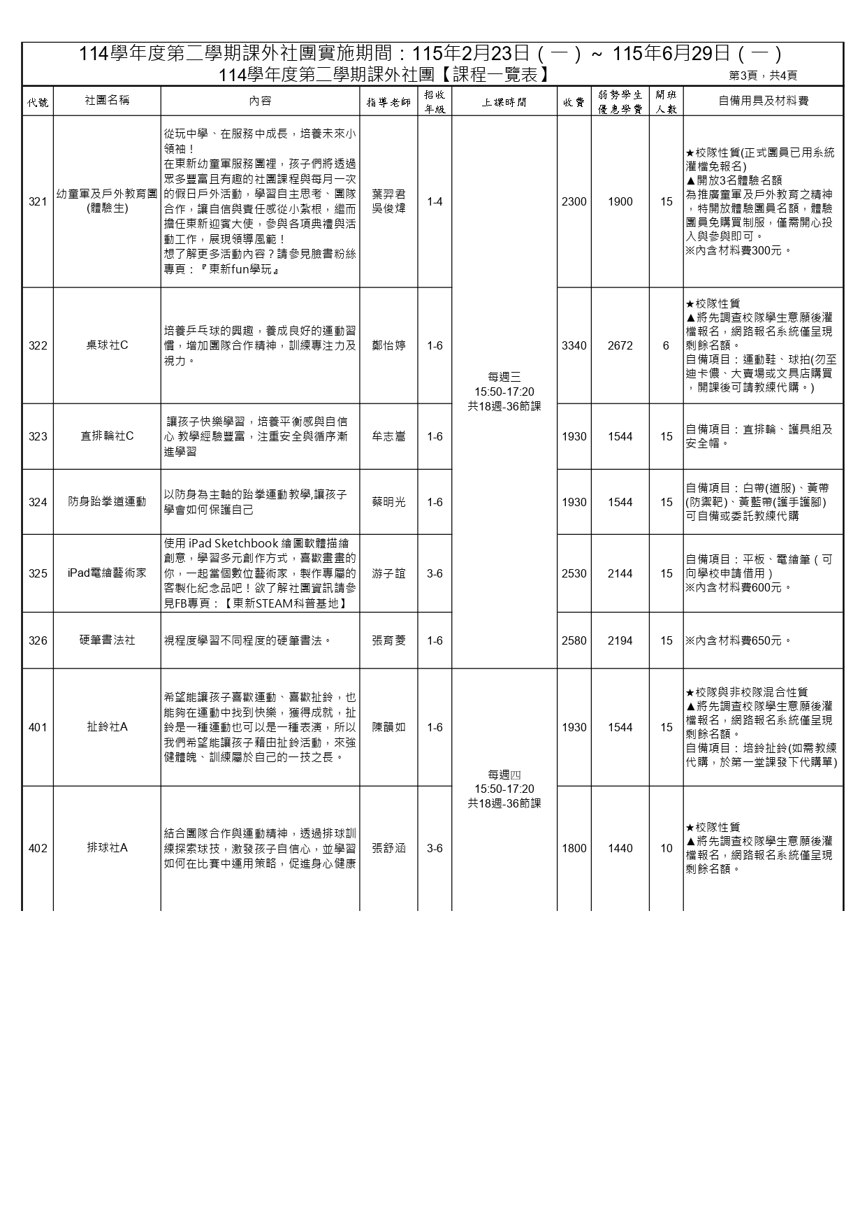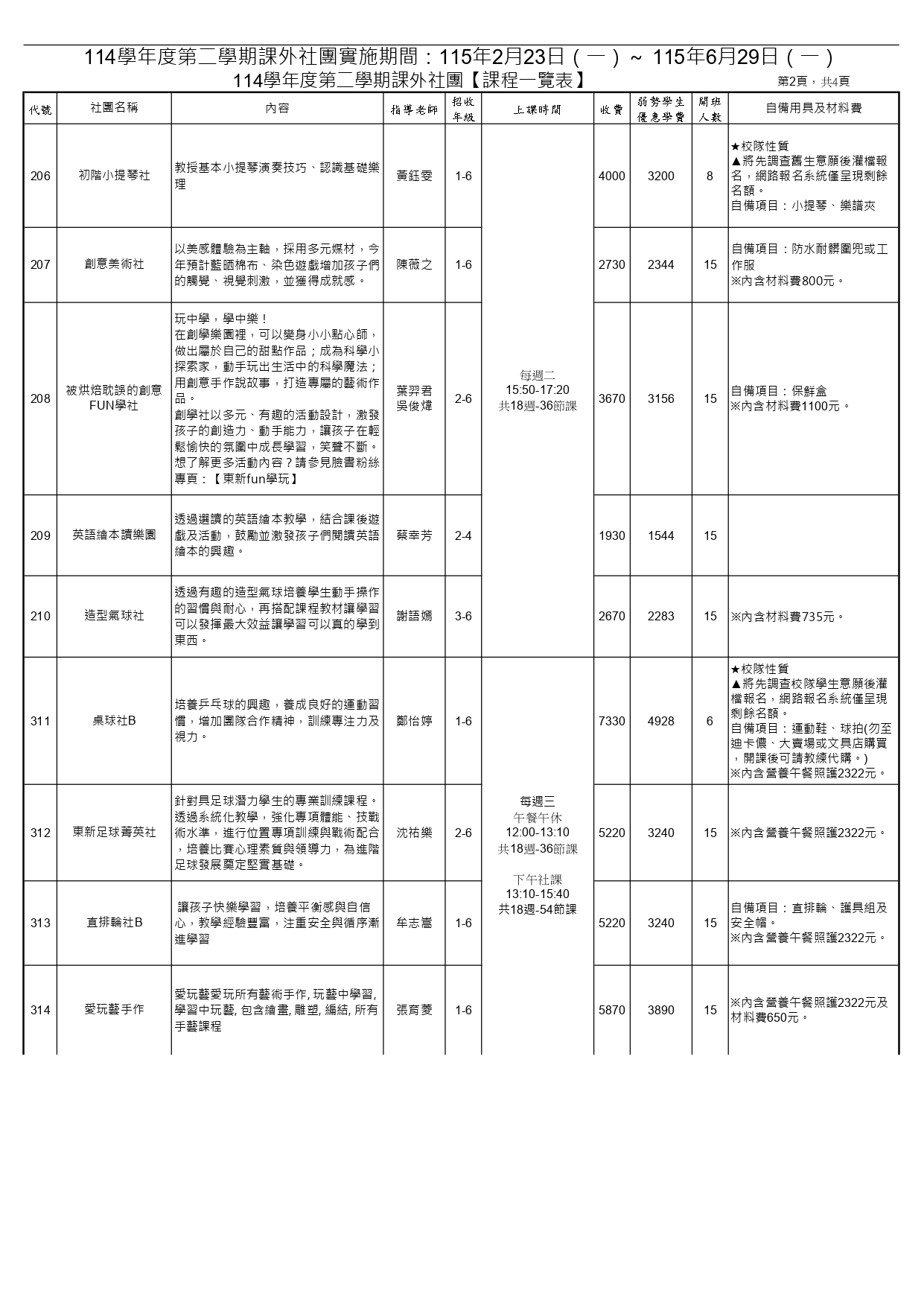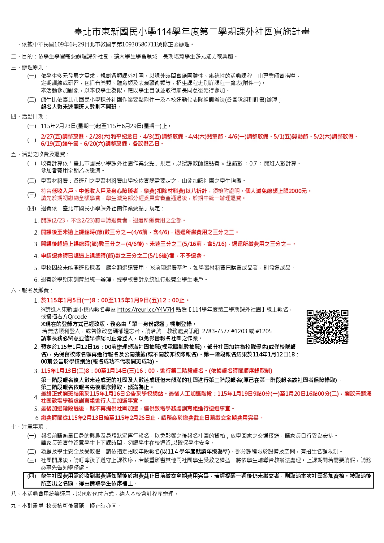 ※請進入東新國小校內報名專區 https://reurl.cc/Y4V7l4 點選【114學年度第二學期課外社團】線上報名。